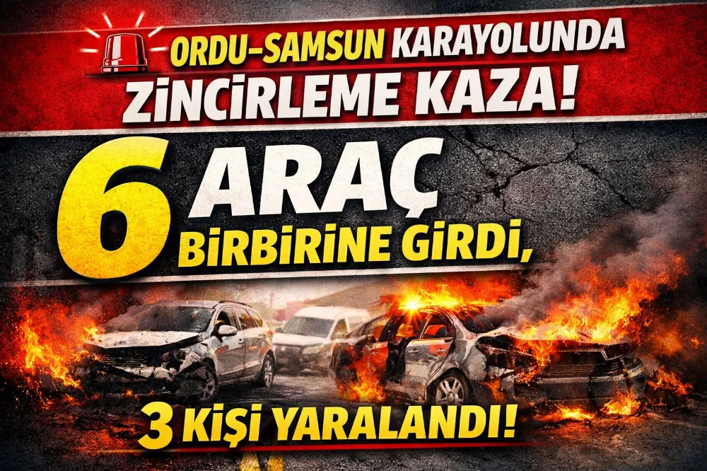 Ordu–Samsun Karayolu üzerinde meydana gelen zincirleme trafik kazasında 6 araç birbirine girdi. Kazada 3 kişi yaralanırken, çıkan yangın sonucu 3 araç tamamen kullanılamaz hale geldi.