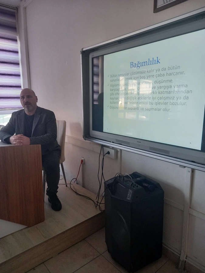 Programda, Uzman Psikolog M. Zeki Saka öğrencilere “Bağımlılık ile Mücadele” konusunda kapsamlı bir sunum yaptı.