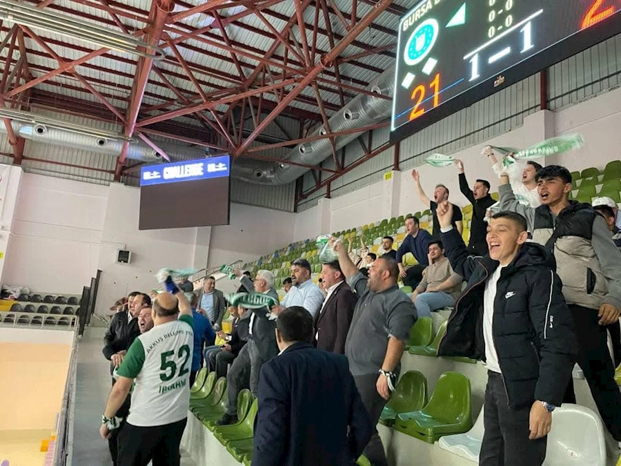 Bursa’da oynanan karşılaşmada Akkuşlu taraftarlar takımlarını yalnız bırakmadı. Tribünlerde yerini alan taraftarlar, maç boyunca takımlarına destek vererek galibiyet sevincine ortak oldular.
