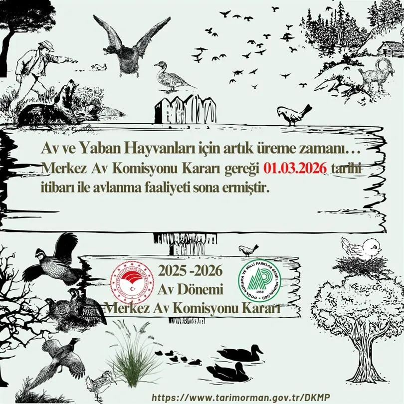 Ülkemizde kara avcılığını düzenleyen temel mevzuat olan 4915 Sayılı Kara Avcılığı Kanunu kapsamında faaliyet gösteren Merkez Av Komisyonu (MAK) tarafından alınan karar doğrultusunda, av ve yaban hayvanlarının üreme dönemine girmesi nedeniyle avlanma faaliyetleri durduruldu.