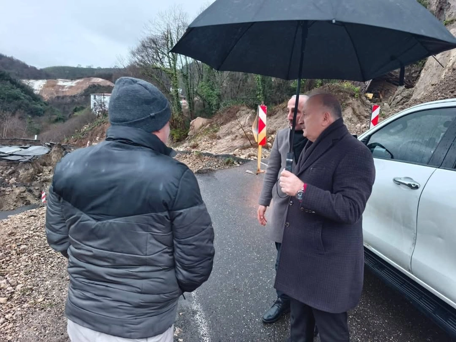 Ünye Belediye Başkanı Hüseyin Tavlı, Ünye–Akkuş–Niksar Karayolu Kale Mevkii’nde meydana gelen heyelan sonrası bölgede incelemelerde bulundu.