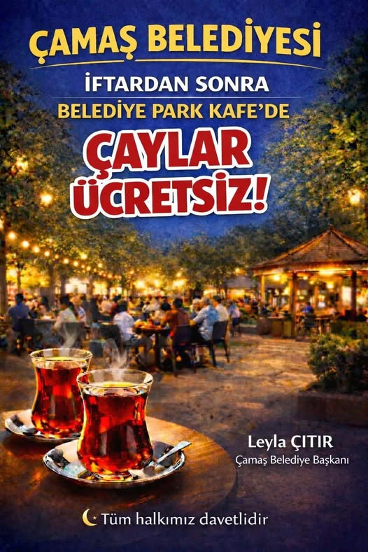 “Ramazan’ın bereketi Çamaş’ta paylaşılmaya devam ediyor. Belediyemiz tarafından Ramazan ayı boyunca iftardan sonra Belediye Park Kafe’de çaylarımız ücretsiz olarak ikram edilecektir. Tüm hemşehrilerimizi bu güzel Ramazan akşamlarında sohbet ve muhabbet eşliğinde çay içmeye davet ediyoruz. Aynı yöne bakanların şehri değişir.”
