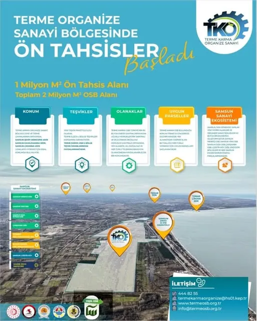 Samsun’un Terme ilçesinde kurulan Terme Karma Organize Sanayi Bölgesi’nde (OSB) 2026 yılı Mart ayı ön tahsis süreci resmen başladı. Sanayi ve Teknoloji Bakanlığı tarafından yayımlanan 2026 Yılı Mart Ayı Ön Tahsis ilanları kapsamında, Samsun Terme Karma OSB’de toplam 868 bin 525 metrekarelik alan yatırımcıların başvurusuna açıldı.