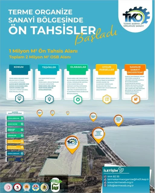 Karadeniz Bölgesi’nin en büyük organize sanayi alanlarından biri olarak gösterilen Terme Karma OSB’nin, Samsun’un üretim, istihdam ve ihracat kapasitesine önemli katkı sağlaması hedefleniyor. Bölgenin, yatırım odaklı büyüme stratejisi doğrultusunda sanayi altyapısını güçlendirecek önemli projeler arasında yer aldığı belirtiliyor.