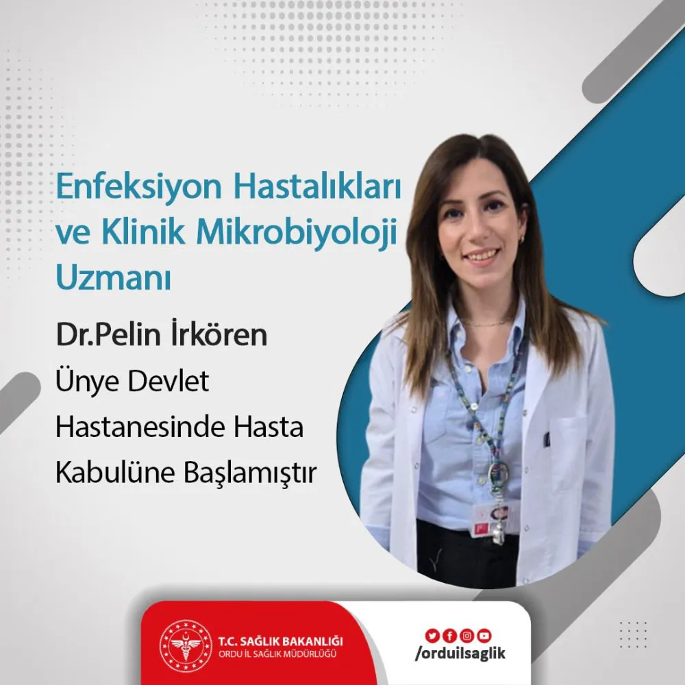 Ünye Devlet Hastanesi kadrosu yeni bir uzman hekimle güçlendi. Enfeksiyon Hastalıkları ve Klinik Mikrobiyoloji Uzmanı Uz. Dr. Pelin İrkören, hastanede görevine başladı.
