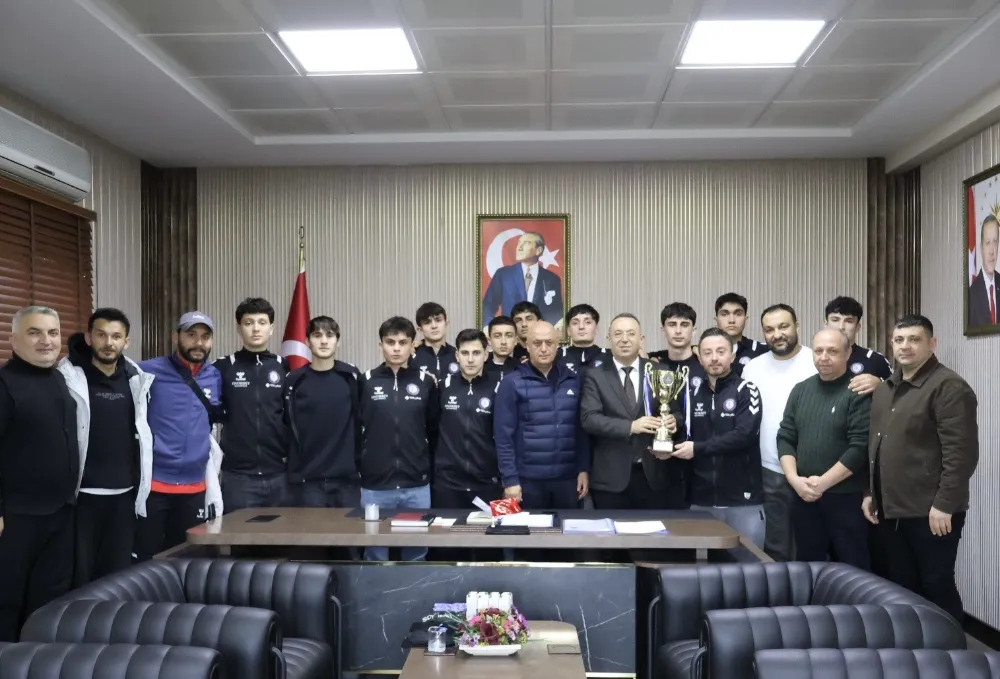 Kulüp yönetimi, teknik heyet ve sporcuların katıldığı ziyarette, şampiyonluk kupası Murtaza Alan’a takdim edildi. Ziyaret sırasında Başkan Metin Tamtürk, takımda bulunan lise yaş grubu öğrenciler ve sporcu öğrenciler adına İlçe Milli Eğitim Müdürü’ne teşekkürlerini iletti. Tamtürk, “Sporcu öğrencilerimizin elde ettiği büyük başarıyı paylaşmak ve kendilerini destekleyen İlçe Milli Eğitim Müdürümüz Murtaza Alan’a teşekkürlerimizi sunmak istedik” dedi.