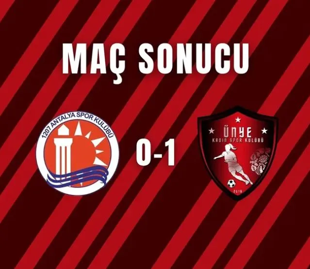 Ligin 20. hafta mücadelesinde 1207 Antalya Kadın Futbol Kulübü’ne konuk olan Ünye Kadın SK, Antalya Zeytinköy 2 Nolu Sahası’nda oynanan karşılaşmadan galibiyetle ayrıldı.