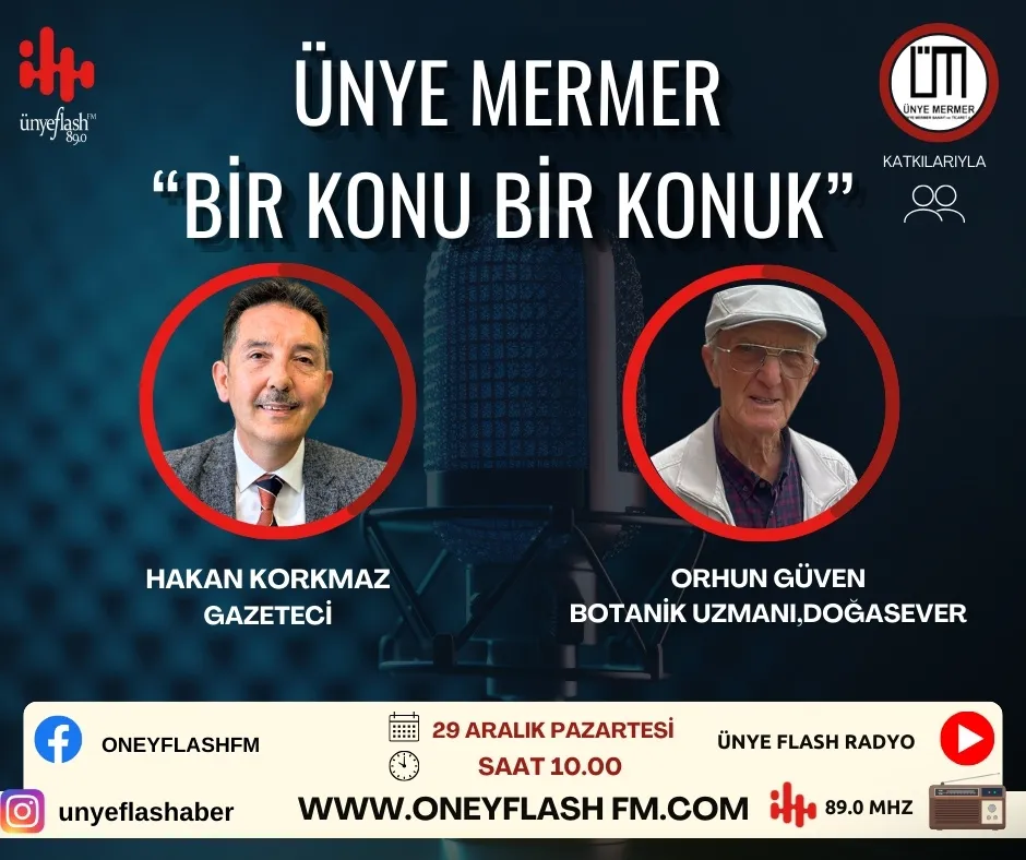 Ünye Mermer katkılarıyla hazırlanan “Bir Konu Bir Konuk” programının bu haftaki stüdyo konuğu, Botanik Uzmanı ve Doğasever Orhun Güven oluyor.