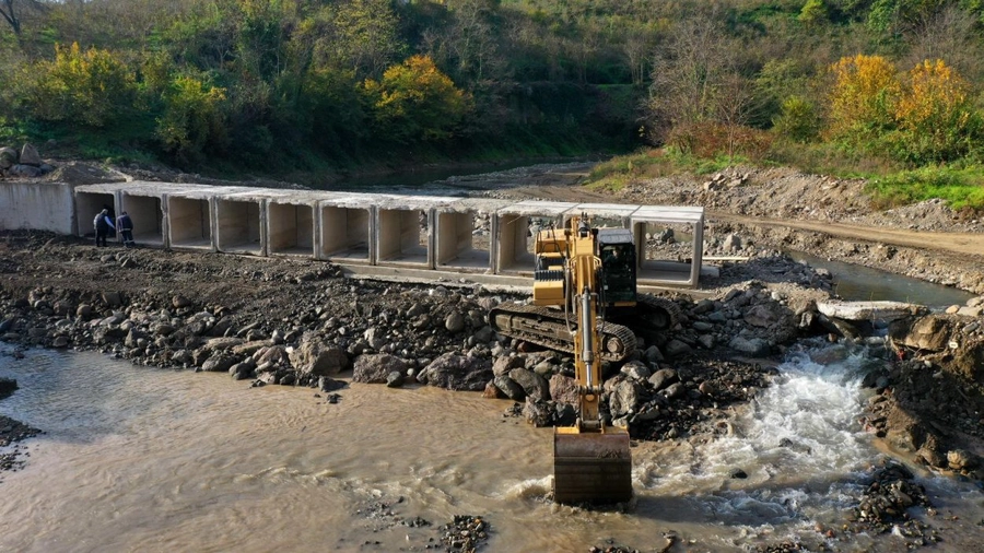 Ordu Büyükşehir Belediyesi Altınordu ilçesi ile Perşembe ilçesini birbirine bağlayan Akçaova Irmağı üzerinde dev baks çalışması yapıyor.
