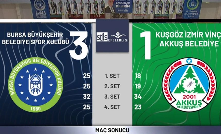SMS Grup Efeler Ligi’nde ligde kalma mücadelesi veren Kuşgöz İzmir Vinç Akkuş Belediyespor, 23. hafta mücadelesinde Bursa Büyükşehir Belediyespor’a deplasmanda mağlup oldu.