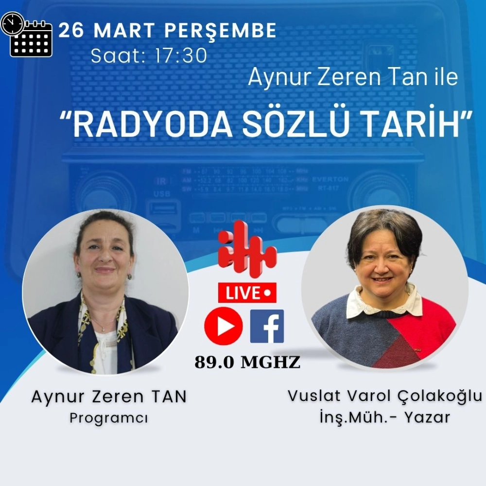 Oney Flash FM program yapımcısı Aynur Zeren Tan’ın hazırlayıp sunduğu “Radyoda Sözlü Tarih” programının bu haftaki stüdyo konuğu, “Ben Bu Dünyaya Ait Değilim” kitabının yazarı, İnşaat Mühendisi Vuslat Varol Çolakoğlu olacak.
