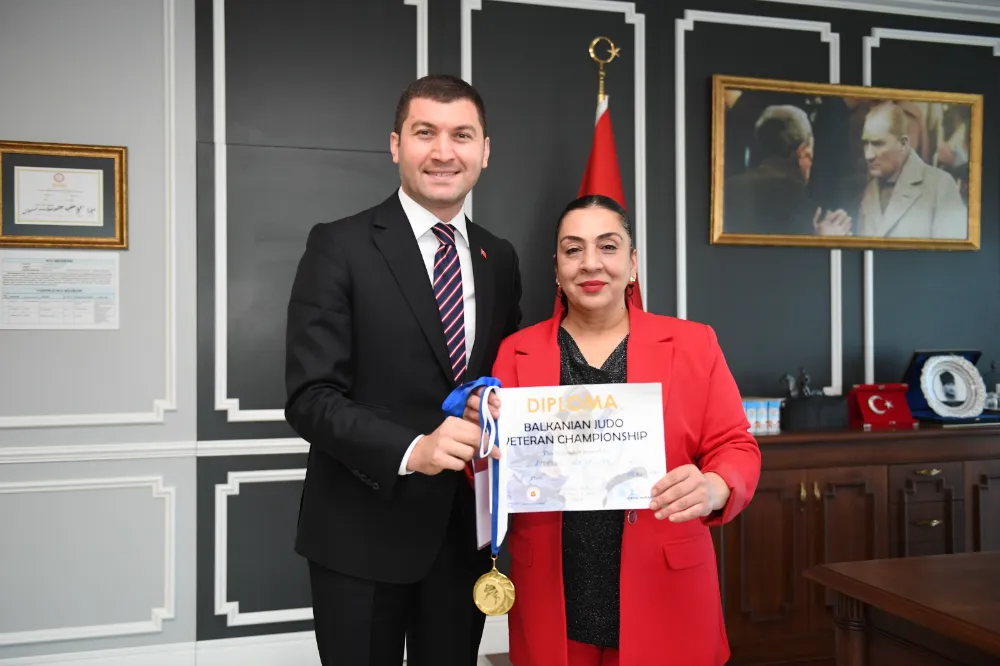 Altınordu Belediye Başkanı Ulaş Tepe, Veteranlar Balkan Judo Şampiyonası’nda rakiplerini mağlup ederek Balkan Şampiyonu olan Altınordu Belediyesi personeli, Milli Sporcu Ayşegül Şensoy Göl’ü makamında ağırlayarak tebriklerini paylaştı.