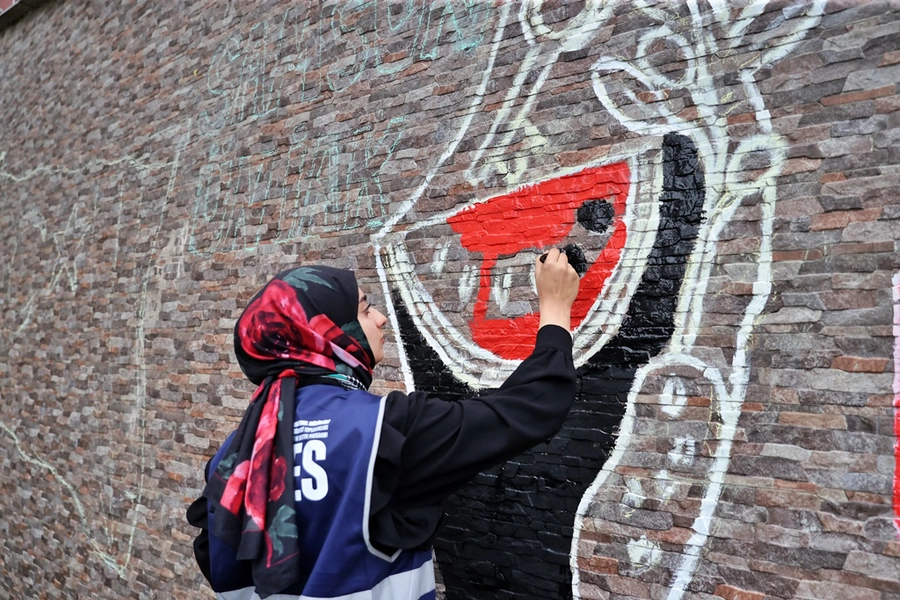 Ondokuz Mayıs Üniversitesi (OMÜ) Yaşam Merkezi'nde Akil Gençlik Topluluğu (ÜNİAK) üyesi öğrencilerce "Kampüslerden Filistin'e Dayanışma" etkinliği kapsamında OMÜ kampüsündeki duvar, grafitiyle donatıldı.
