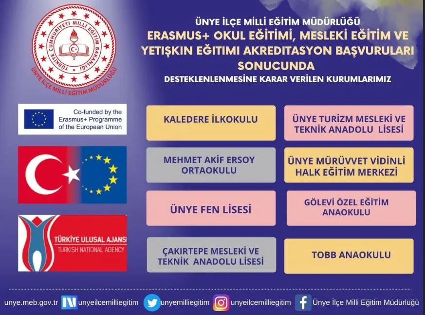Değerlendirmeler neticesinde aşağıdaki eğitim kurumları Erasmus+ Akreditasyonu konsorsiyum üyesi olmaya hak kazandı: