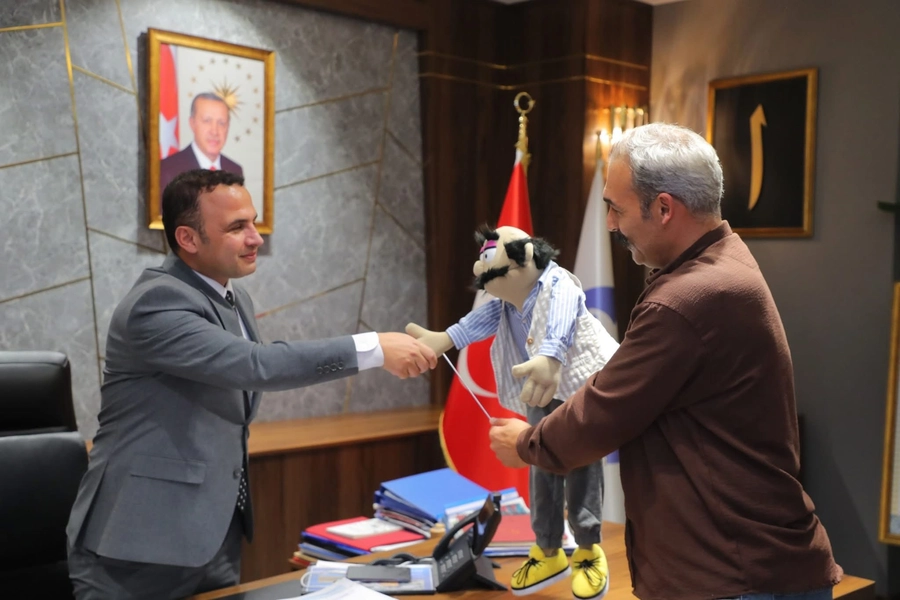 Ünye Şehir Tiyatrosu Genel Sanat Yönetmenleri Kerim Aydemir ve Coşkun Çetinalp, beraberlerindeki tiyatro oyuncularıyla birlikte Fatsa Belediye Başkanı İbrahim Etem Kibar’ı makamında ziyaret ettiler.