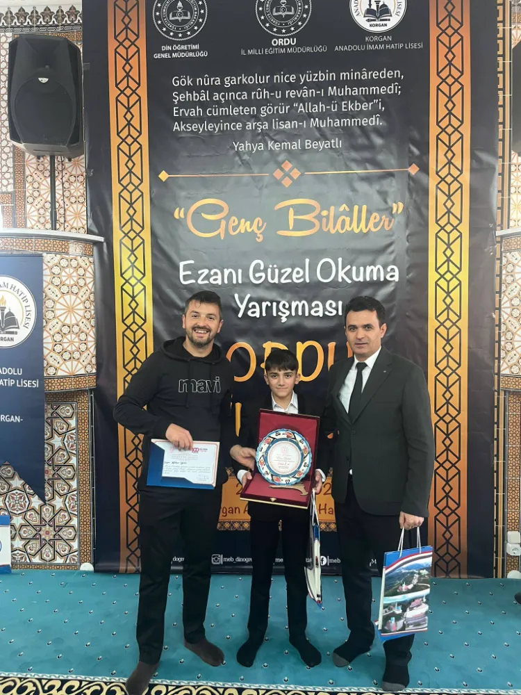 “Genç Bilaller” Ezanı Güzel Okuma Yarışması’nda Ünye İmam Hatip Ortaokulu öğrencisi Ünyeli Ömer Emin Çelik, il birincisi olarak küçük yaşta büyük bir başarıya imza attı.