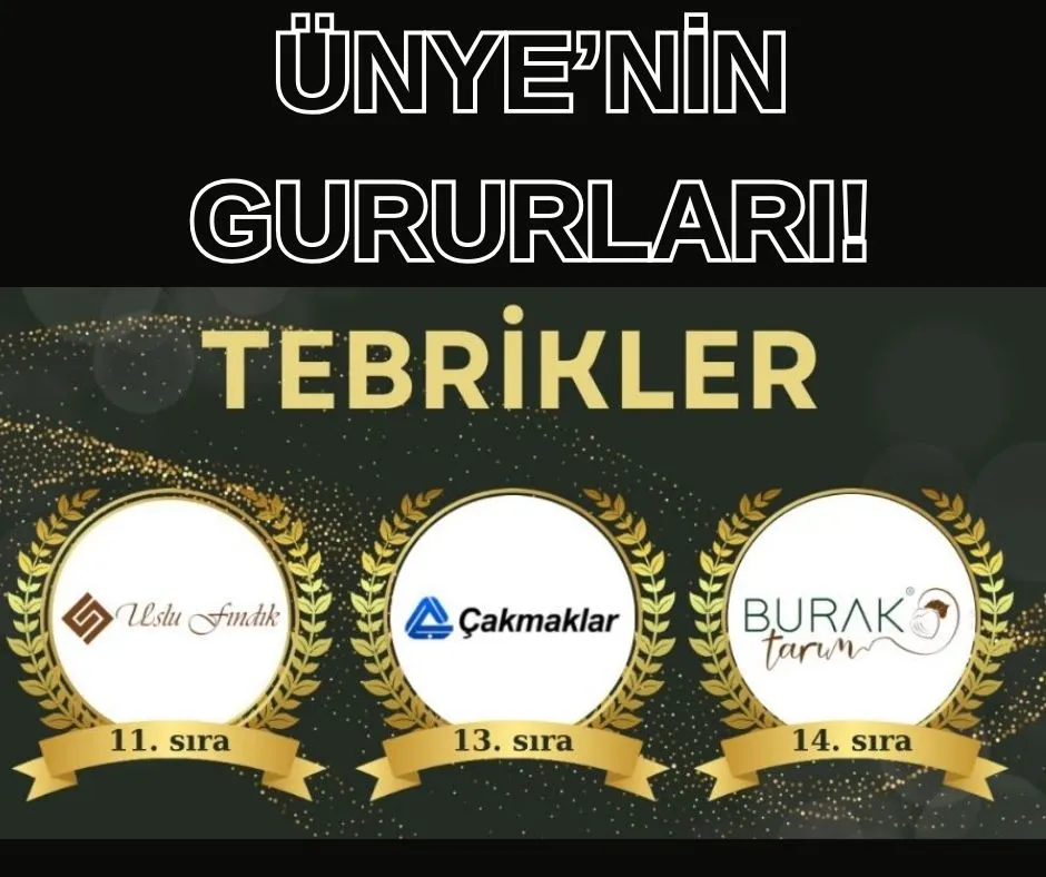 “İstanbul İhracatçı Birlikleri’nin 2025 yılında en fazla fındık ihracatı yapan ilk 20 firması arasında yer alan, şehrimizin ekonomisine değer katan; üretimi, istihdamı ve başarılarıyla Ünye’nin adını Türkiye’ye taşıyan tüm firmalarımızı yürekten tebrik ediyoruz.”